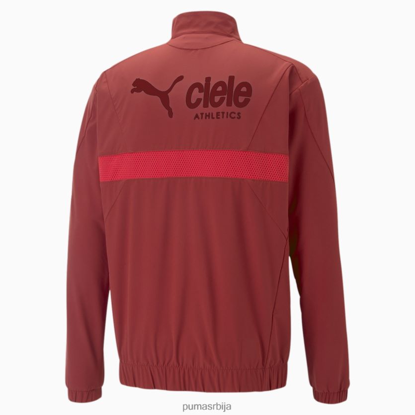 удружили смо снаге са компанијом циеле да бисмо представили колекцију која је пркосно модерна у конструкцији, осећају и перформансама – безвременског стила. ова јакна за стазу је направљена сатима током трчања или брзог загревања пре маратона захваљујући својој конструкцији која одводи влагу, ергономским кројевима и лаганој тканини.п>раинцелл: технологија дизајнирана да задржи влагу. заштићени сте од кише и суви током вежбањали>дрицелл: технологија перформанси дизајнирана да одвуче влагу из тела и заштити вас од зноја током вежбањали>рециклирани садржај: направљен од најмање 70 % рециклираног материјала као корак ка бољој будућностили>ул>регуларно пристајањели>водоодбојноли>затварање пуним патентним затварачемли> пума к циеле брендингли>ул>